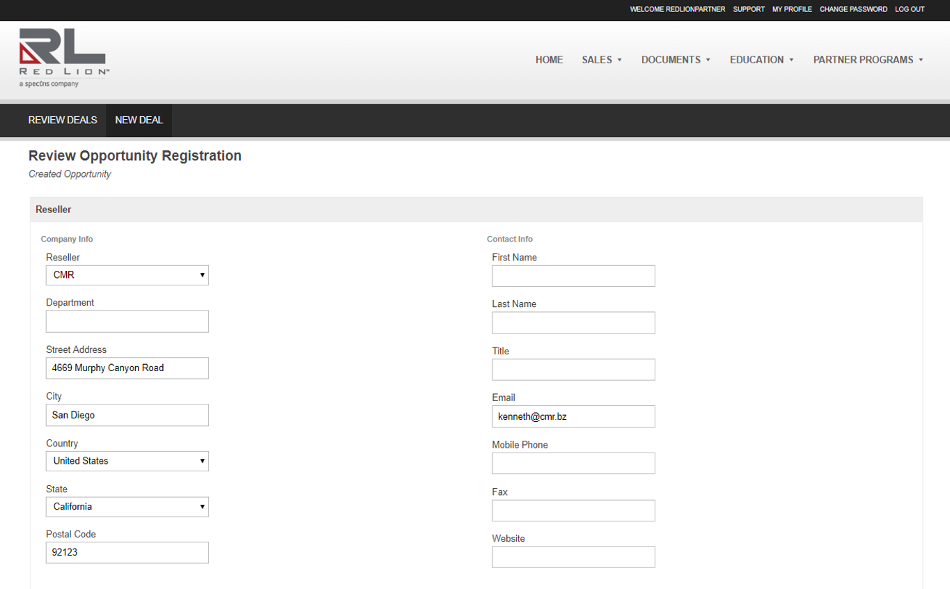 Next, you will see the registration information auto-populated in the Reseller section. Your information, which you entered on the My Profile page, will be auto-populated in the Reseller information.