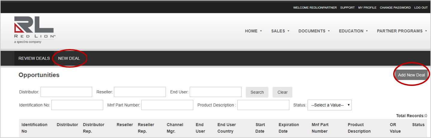 2. Add New Deal button on the right-hand side of the Opportunities page.